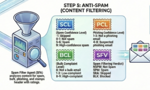 5. Anti-SPAM Content Filtering: Checks for spam, phishing, bulk email, and spoofing.